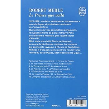 1572-1588 : années «venteuses et tracasseuses» où catholiques et protestants continuent de s'entredéchirer. Quittant de nouveau son château périgourdin, le huguenot Pierre de Siorac retrouve Paris où il devient le médecin, puis l'agent secret d'Henri III.Mûri, mais non vieilli, Pierre va découvrir, au cours de périlleuses missions, les menaces qui guettent le royaume, à l'heure où l'ambitieux Philippe II d'Espagne, mettant à profit nos discordes, arme contre le roi de France le bras du duc de Guise, chef redouté de la Ligue...Tableau saisissant d'un roi au milieu de ses grands féaux, des « quarante-cinq » qui le protègent contre les dagues, du Paris fanatique et rebelle qui le chassera du trône, Le Prince que voilà nous mène parmi les complots, les rivalités, les intrigues qui semblent bien devoir anéantir la « fortune de France ». Pourtant ni l'amitié ni le bonheur de vivre ne perdent leurs droits. Ni l'entrain inépuisable et fécond d'un romancier plus captivant que jamais.