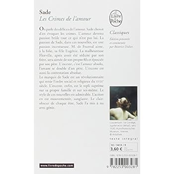 On parle des délices de l'amour. Sade choisit d'en évoquer les crimes. L'amour devenu passion brûle tout ce qui n'est pas lui. La passion de Sade, dans ces nouvelles, est une passion incestueuse. M. de Franval aime, à la folie, sa fille Eugénie. La malheureuse Florville, après avoir été séduite par son frère, sera aimée de son propre fils et épousée par son père. L'inceste, c'est l'amour absolu, l'amant se double d'un père. L'inceste est aussi la contestation absolue. Le marquis de Sade est un révolutionnaire qui renie l'ordre social et religieux du xviiie siècle. L'inceste, enfin, est le repli suprême sur sa propre famille et sur soi-même. Le style de ces nouvelles est admirable. L'action en est mouvementée, sanglante. Le clair-obscur de chaque être, Sade l'a mis à nu avec génie.Edition présentée et commentée par Béatrice Didier.
